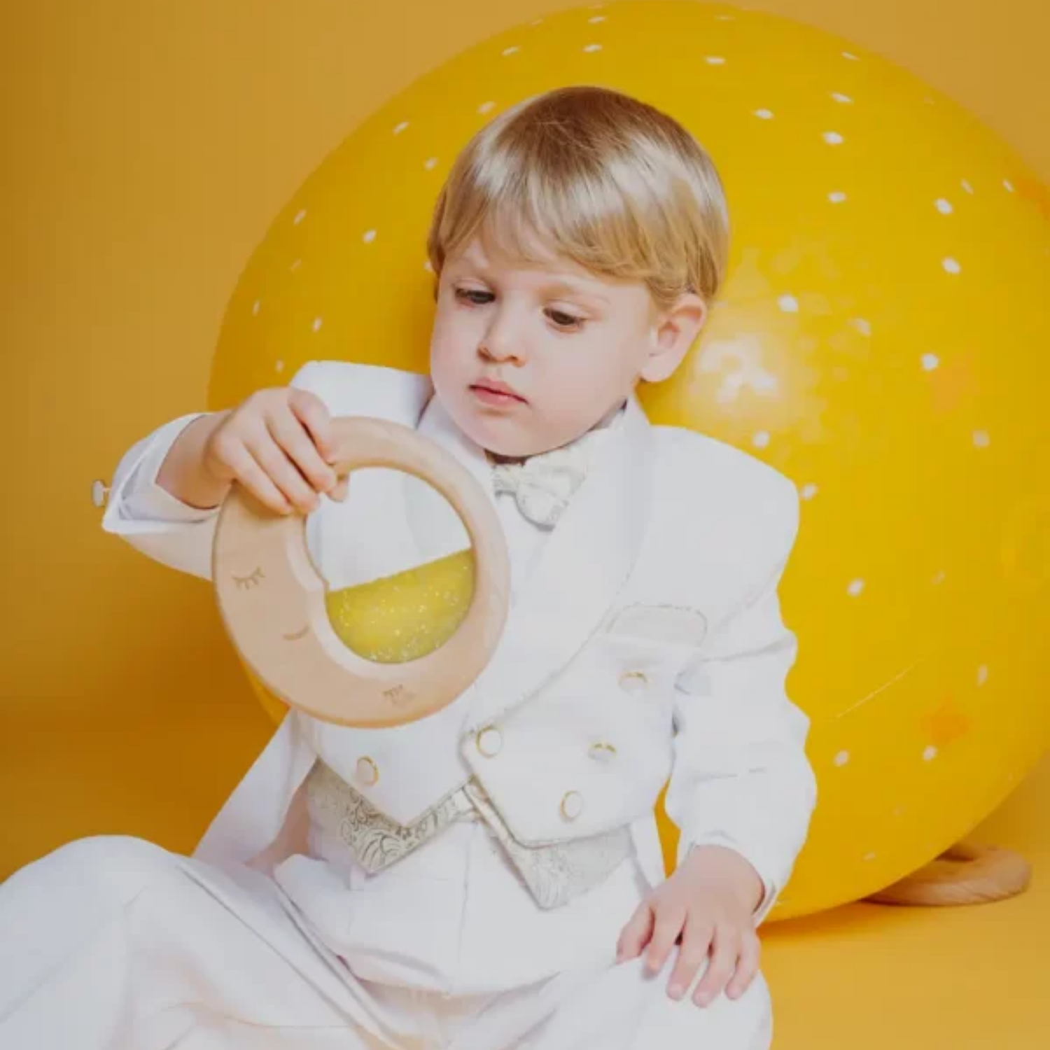 Réalisée en bois de hêtre naturel, cette lune sensorielle contient des pigments lumineux qui attirent doucement le regard de l’enfant. L’observation de ses reflets favorise le développement du suivi visuel, tout en aidant l’enfant à ralentir et à se recentrer émotionnellement.